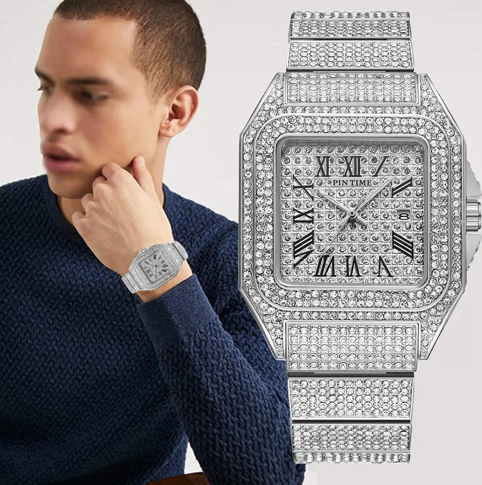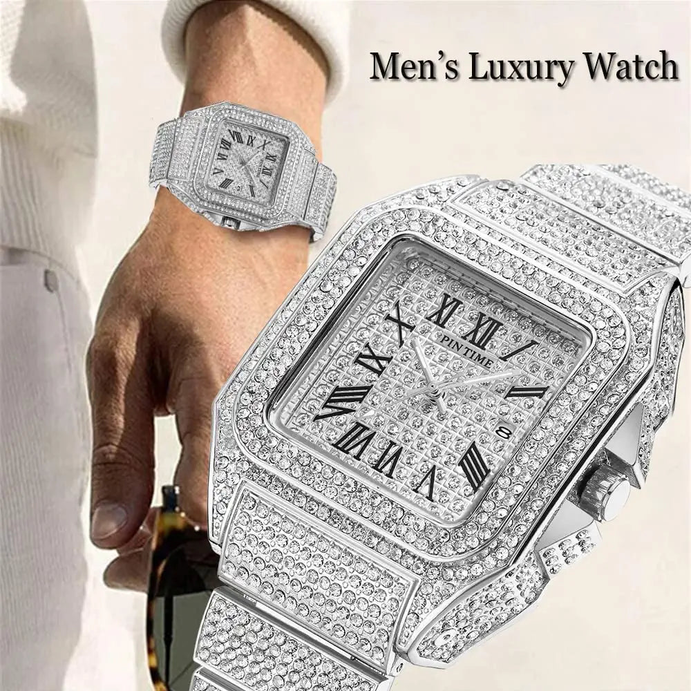 Cartier-Inspired Diamond Square Quartz Watch in Silver - Luxury Men's Timepiece with Iced-Out Bezel (40mm)