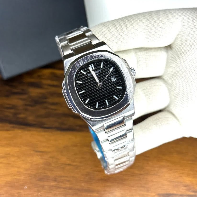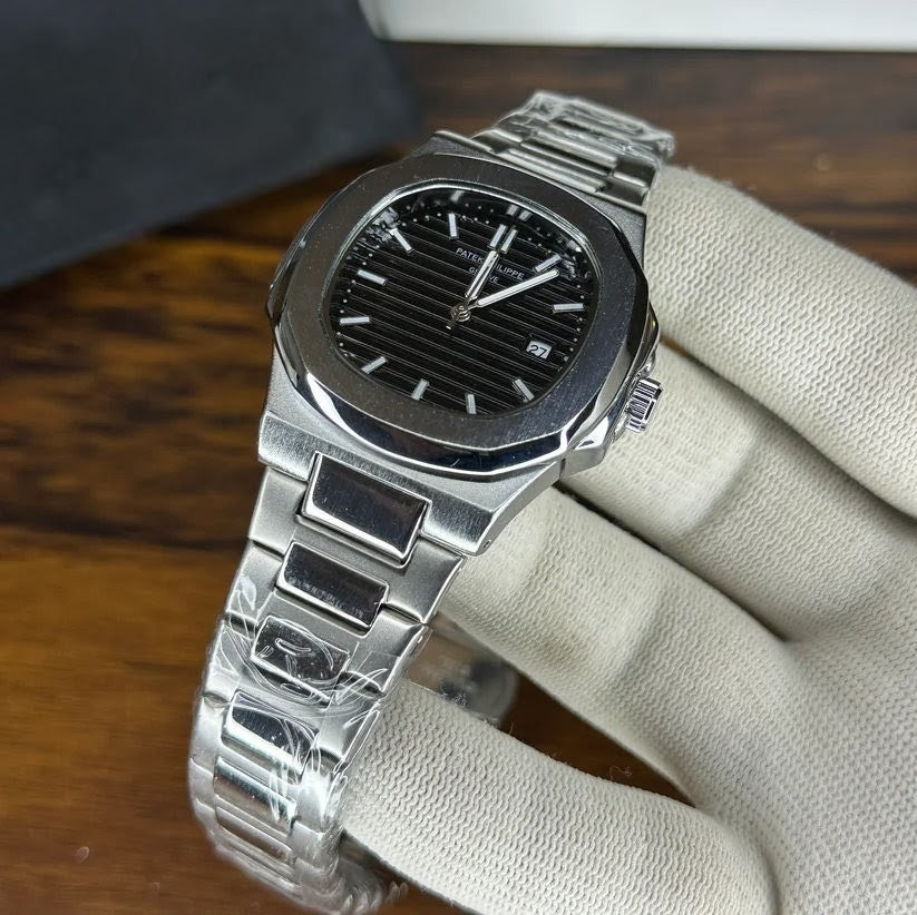 Patek Philippe Nautilus Replica Watch - Silver Chain Black Dial Luxury Men's Timepiece