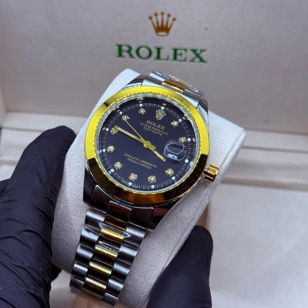 Rolex Datejust Two-Tone Black Dial with Diamond Markers - Luxury Oyster Steel and Yellow Gold Watch